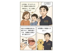 アレルギー性鼻炎やスギ花粉症、ダニアレルギーがあるお子さんの治療に、いま注目されているのが**「舌下免疫療法」**です。 これは、単に症状を抑える薬とは違い、 アレルギー体質そのものを改善する根本治 … 続きを読む 【子どものアレルギー性鼻炎・喘息に】舌下免疫療法で根本治療をめざそう!
